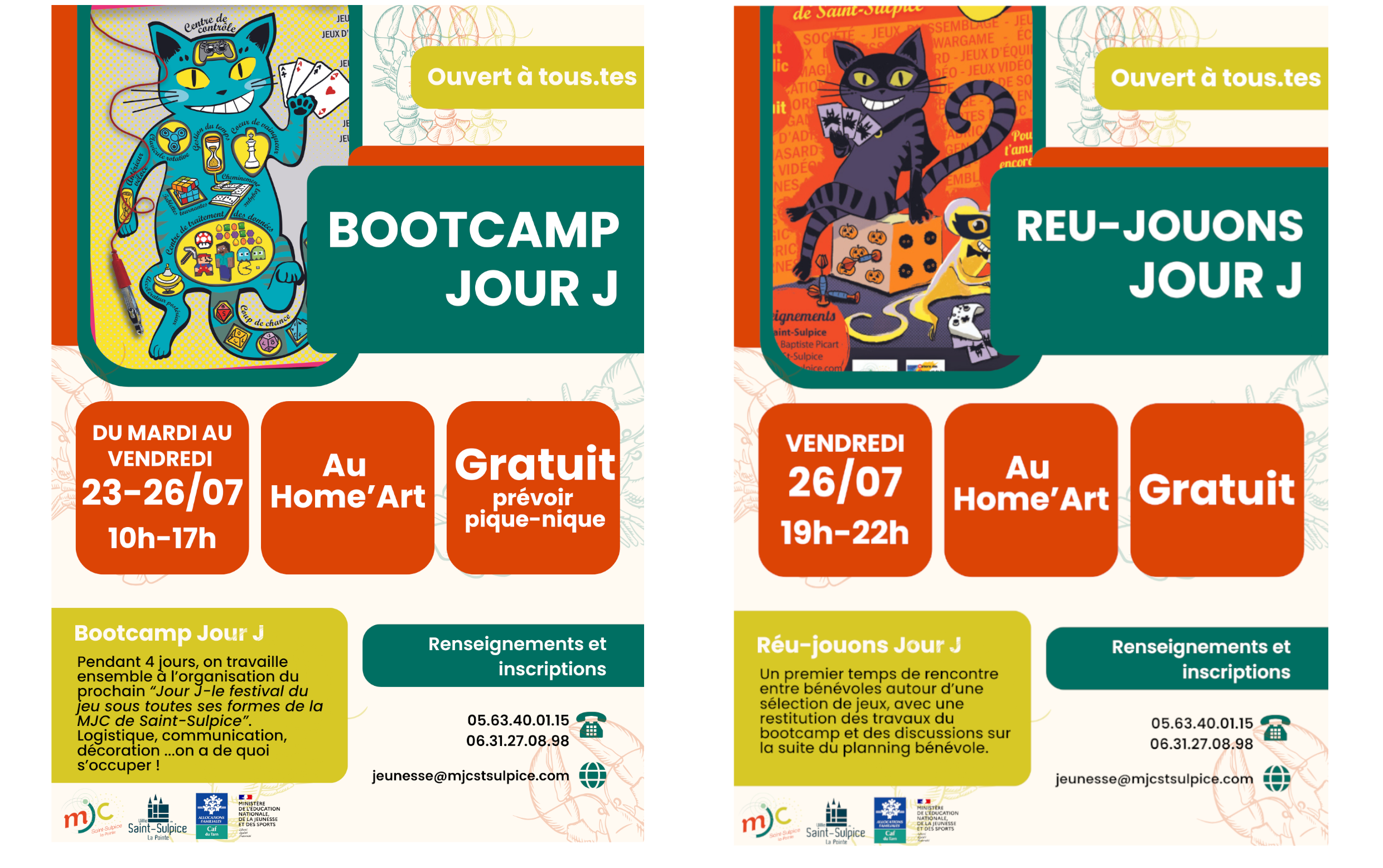 Le Jour J, le festival du jeu sous toutes ses formes par la MJC de Saint-Sulpice revient ! Il aura lieu le 16 novembre 2024. Entre le mardi 23 et le vendredi 26 juillet, on vous propose de passer à la MJC pour nous aider à l’organiser. Contact des prestataires, décisions quant à l’organisation, décoration… on se donne une semaine pour avancer !
